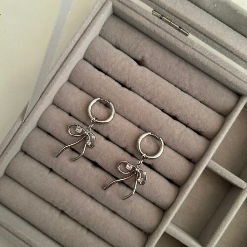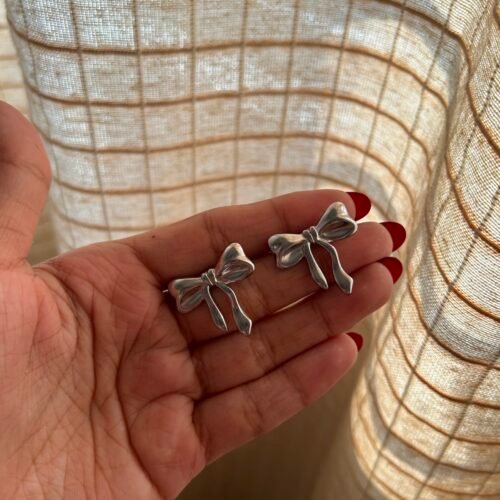Silver Lustrous Bow Earrings